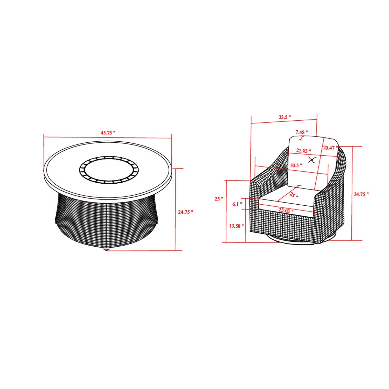 - Swivel Glider: 30.5"W x 33.5"D x 34.75"H